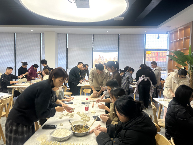 活動于冬至日上午8點準時開始,公司食堂內已布置得當,面粉、餃子餡、調料早已就位,空氣中彌漫著濃濃的節(jié)日氣息。來自不同部門、不同崗位的員工們齊聚一堂,大家臉上洋溢著期待與喜悅,準備共同迎接這一傳統(tǒng)佳節(jié)的到來。