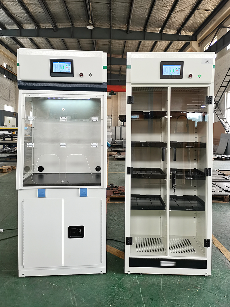 (左:凈氣型通風(fēng)柜 右:凈氣型藥品柜)