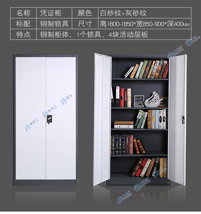 顏色:白紗紋+灰紗紋 規(guī)格:高1800-1850*寬850-900*深400mm 用途:鋼制柜體,1個鎖具,4塊活動層板,廣泛適用于各種場所。