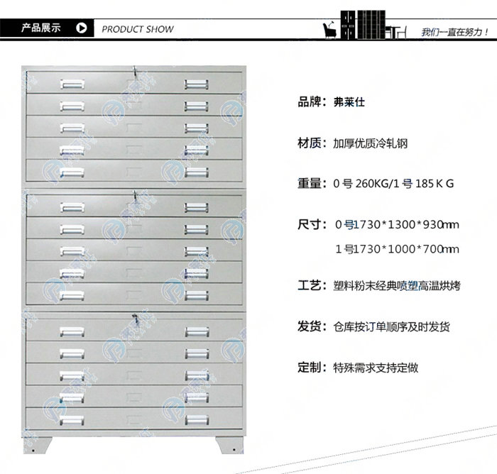 洛陽弗萊仕金屬制品有限公司是一家集科研,設(shè)計(jì),制造,銷售,安裝,售后服務(wù)于一體的鋼制家具專業(yè)生產(chǎn)企業(yè)。公司現(xiàn)擁有包括工業(yè)安防柜,實(shí)驗(yàn)室家具,校用設(shè)備,密集架,鋼柜,不銹鋼定制六大核心系列,能夠滿足學(xué)校,醫(yī)院,大型國(guó)企的一站式配套工程。公司自成立以來,始終堅(jiān)持“高科技、高質(zhì)量、高服務(wù)”的方針,以專業(yè),獨(dú)特的創(chuàng)新理念,在全國(guó)知名的鋼制家具生產(chǎn)基地迅速崛起。產(chǎn)品主要銷往北京、上海等全國(guó)20多個(gè)省市.得到了廣大用戶的肯定和贊賞,享有較高的聲譽(yù)。經(jīng)過不斷努力及完善,公司擁有先進(jìn)的生產(chǎn)設(shè)備,強(qiáng)大的規(guī)模生產(chǎn)能力,并擁有一批高素質(zhì)的生產(chǎn)管理人員和技術(shù)人員,及合理健全的售后服務(wù)體系,并把追求卓越、引領(lǐng)時(shí)尚的奮斗目標(biāo)貫穿于生產(chǎn)整個(gè)過程。