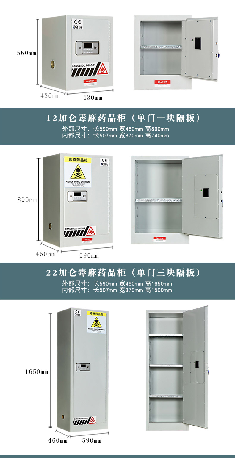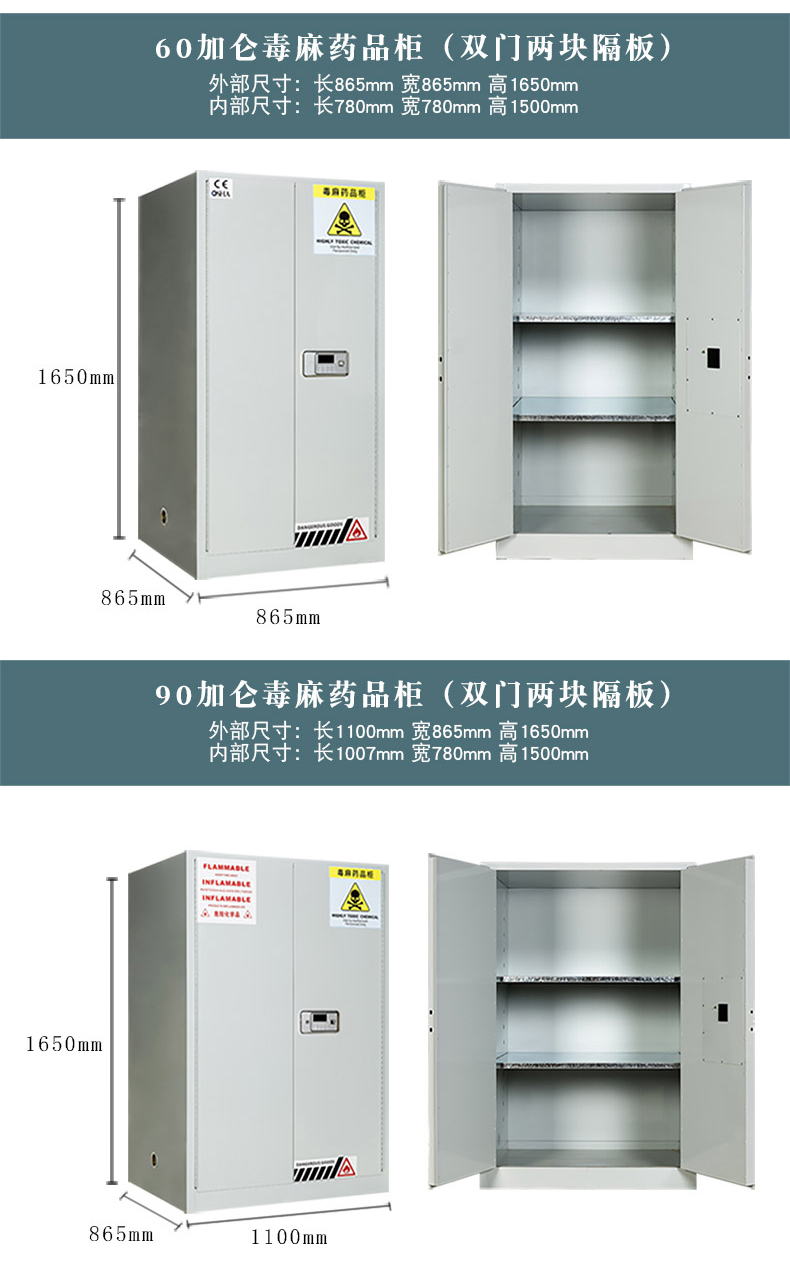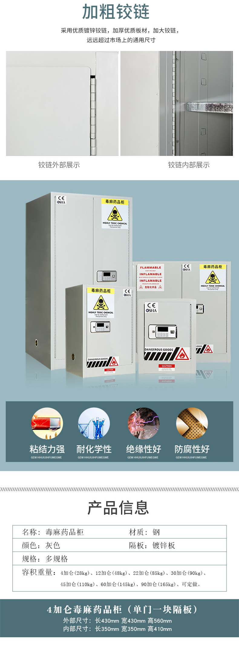 顏色:灰白色 規(guī)格:45加侖(高1650*深460*寬1090)170L 用途:適用于存儲鴉片、海洛因、杜冷丁、甲基苯丙胺(冰毒)、大麻、可卡因等麻醉藥和毒品。